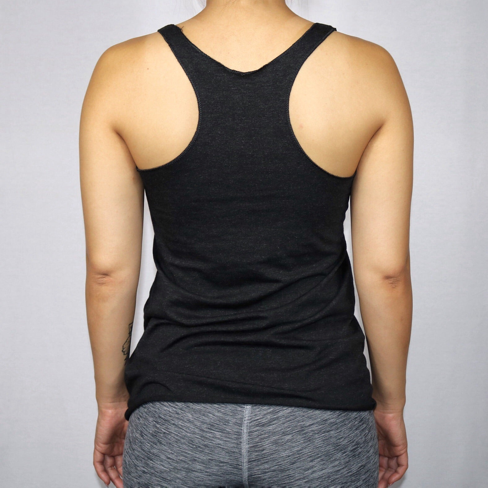 Thin, lightweight racerback tank top. Designed with tri-blend quality fabrics that provide a flattering flowy fit with some stretch. Can be worn in and out of the gym.